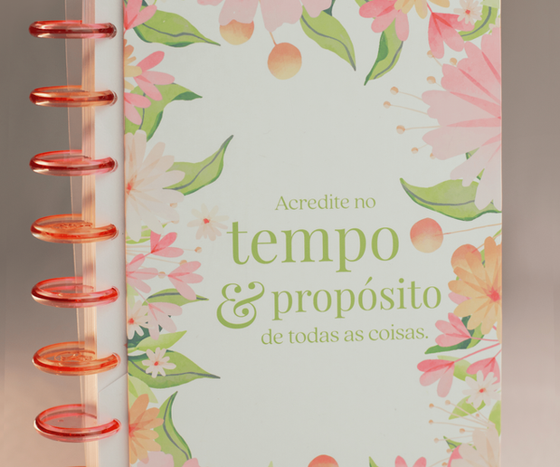 O processo criativo da coleção buscou traduzir a leveza da primavera em estampas florais que conversassem entre si. Foram desenvolvidas cinco estampas para planners, conectadas por combinações de cores que se complementavam: laranja e lilás, lilás, laranja com rosa, laranja e rosa.